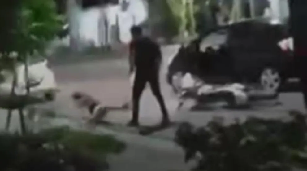 Según relataron testigos a medios locales, el hombre habría intentado frenar a los ocupantes de la moto – un muchacho al volante y su hija de acompañante – tras verlos sin casco. Al no recibir respuesta, habría tomado la decisión de embestir el vehículo, agredir a su hija y llevarse la motocicleta.